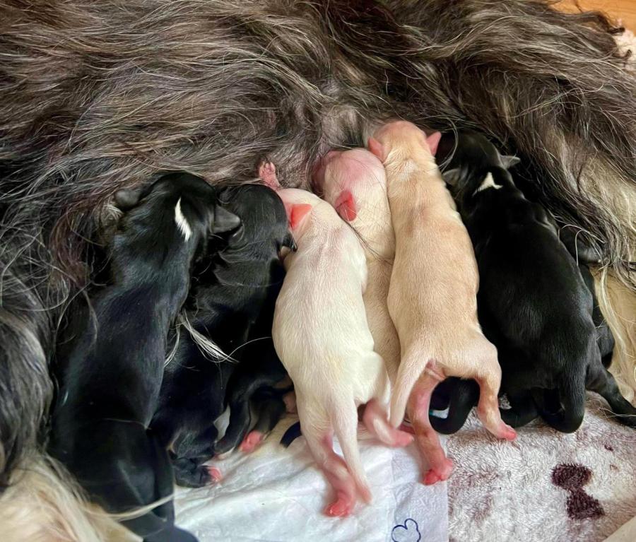 Natürlich gehören die ersten Tage nur Nima und den Welpchen, die kleine Familie muss sich erst einmal kennen lernen. Aber Nima macht das so instinktsicher, als hätte sie nie etwas anderes getan.