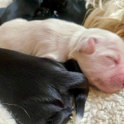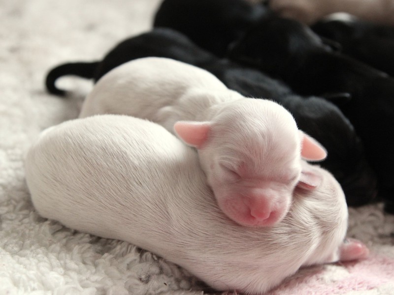 Kontaktliegen: Welpen haben die Angewohnheit, zum Schlafen ganz nah zusammenzurücken oder sich dicht an ihre Mutter zu kuscheln. So stillen sie ihr Bedürfnis nach lebenswichtiger Wärme, Geborgenheit und Vertrauen. Dabei ist jeder Welpe bestrebt, mit Hilfe seines Temperaturempfindens den wärmsten Platz in der Gemeinschaft zu finden.