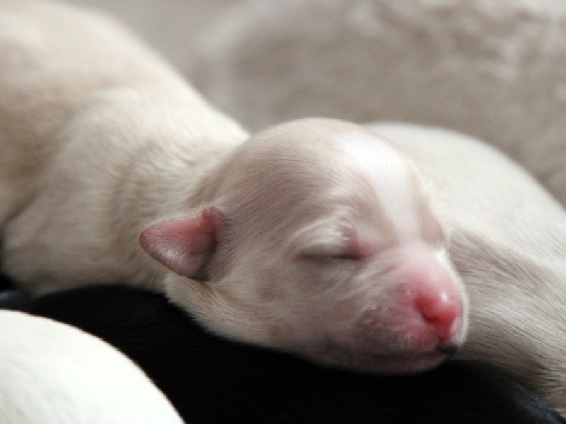 Unmittelbar nach der Geburt, beginnt der Welpe mit dem, was in den nächsten Wochen seine Hauptaufgabe darstellt: trinken. Und er weiß genau was er tut. Durch sogenannte Erbkoordinationen, also erblich festgelegte Bewegungspläne, ist der Welpe, trotz geschlossener Augen und nicht sehr stark ausgebildeten Geruchssinn, in der Lage seine ersten zwei Lebenswochen zu meistern. Durch Schlüsselreize, d.h. bestimmte Situationen, werden die jeweiligen Erbkoordinationen freigesetzt und der Welpe findet den richtigen Weg zu Mamas Zitze, beginnt zu saugen wenn er sie im Maul hat, er kriecht nicht aus dem Körbchen sondern nur im Kreis.