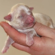 Rüde Nr. 2 Creme allover, ein bisschen dunkler, als seine Schwester